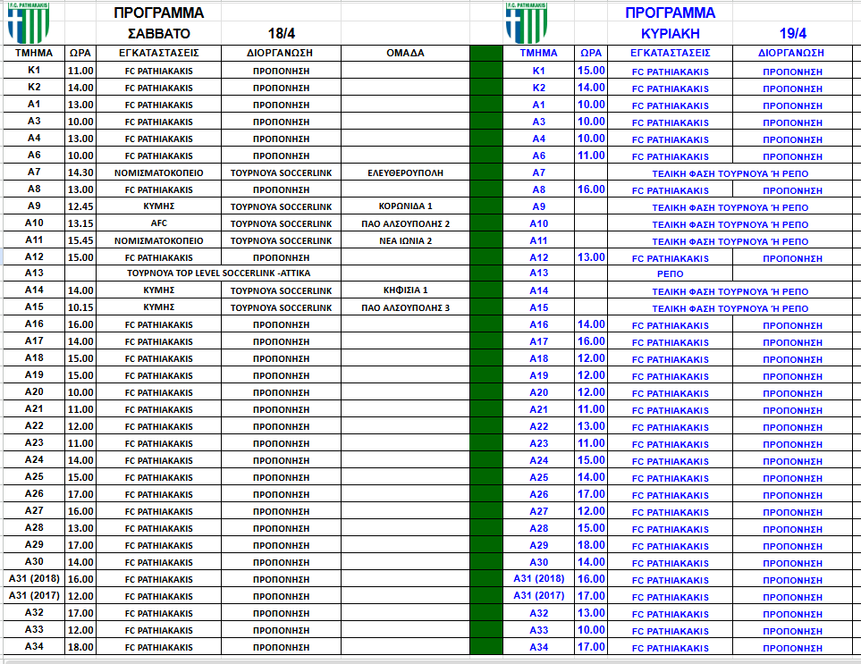 ΠΡΟΓΡΑΜΜΑ ΑΓΩΝΩΝ ΚΑΙ ΠΡΟΠΟΝΗΣΕΩΝ ΑΚΑΔΗΜΙΑΣ 18-19/4/2026 15 Απριλίου, 202615 Απριλίου, 2026Γενικές Ανακοινώσεις
